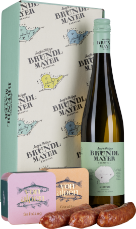 Dieses Genuss-Set ist wie geschaffen für alle, die feine österreichische Spezialitäten lieben – und Wert auf Qualität legen. Der Grüne Veltliner Jakobsweg 2024 bildet die elegante Basis, begleitet von herzhaften Hauswürsteln von Höllerschmid, die für kräftigen, ehrlichen Genuss stehen. Dazu gesellen sich delikate Fischkonserven von „Von Alpen“, die beweisen, wie vielseitig heimischer Fisch sein kann: Gebratene Forellenfilets, verfeinert mit rosa Pfeffer und Thymian, sowie edler Saibling, sanft mit Zitrone abgeschmeckt. Ein Geschenk, das sowohl Fleisch- als auch Fischfreund:innen begeistert – und jedem festlichen Anlass einen köstlichen, österreichischen Akzent verleiht.