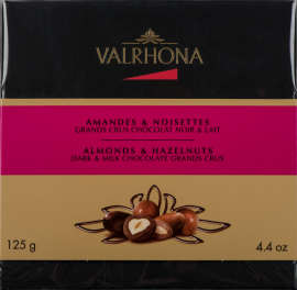 Mandeln und Haselnüsse überzogen mit bester Grand Cru Schokolade in ausgeglichener Dunkler- oder in Milchschokolade mit Noten von Karamell und Vanille.
