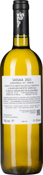 Der Sassaia war der erste Wein, den Natural-Ikone Angiolino Maule je abfüllte. Die Garganega-Trauben stammen aus den Weinbergen rund um das Weingut und werden nach dem Entrappen mit indigenen Hefen im Stahltank vergoren. Am nächsten Tag wird die Weinwerdung in 3000-Liter-Fässern fortgesetzt, wobei der biologische Säureabbau nicht unterbunden wird. Die Füllung findet nach einem Jahr ohne Schwefel statt. So entwickelt der Wein Weichheit, behält aber seine angenehme Säure und bringt die Rebsorte und seine Herkunft sehr gut zur Geltung.