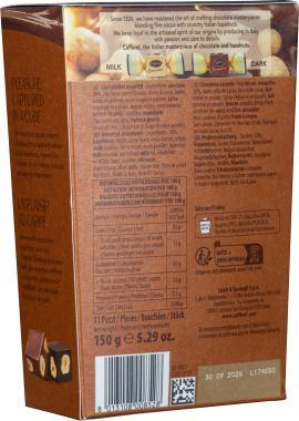 Ein himmlisches Erlebnis mit mundgerecht verpackten Bonbons aus Milchschokolade und dunkler Schokolade sowie ganzen piemontesischen Haselnüssen.