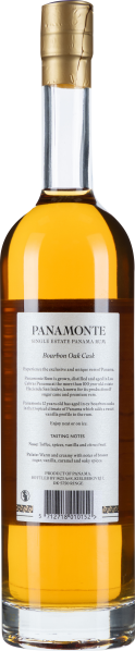 Über 12 Jahre durfte der Panamonte in Bourbonfässern im tropischen Klima von Panama reifen, wo sich die Aromen besonders schnell und intensiv entwickeln. Vanille, Karamell und Zitrusfrüchte dominieren das Aroma. Am Gaumen ist er sehr kraftvoll und eindringlich, aber nicht süß.