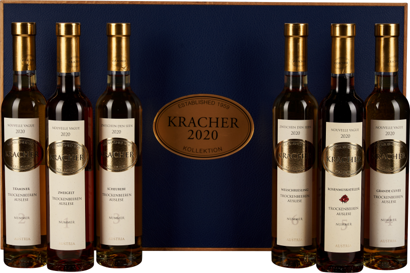Aus den Rebsorten Welschriesling, Chardonnay, Traminer, Scheurebe, Muskat-Ottonel und hin und wieder auch Zweigelt werden im Weinlaubenhof jedes Jahr 10 bis 15 verschiedene Trockenbeerenauslesen in zwei verschiedenen Ausbaustilistiken vinifiziert. „Zwischen den Seen“ heißen jene Weine, die in großen Holzfässern von 500 bis 3000 Litern ausgebaut werden und die klassische Stilistik der Region aufweisen. Die Weine der Linie „Nouvelle Vague“ baut Gerhard Kracher, ebenso wie es sein Vater Alois getan hat, im Barrique aus. Sie zeichnen sich durch Tiefe, Würze und Nachhaltigkeit aus.